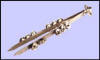 The chimta is another percussion instrument commonly used in the popular Punjabi form of music called bhangra. This is an instrument made of two long flat pieces of metal, typically iron, with pointed ends on one side and a ring on the other end. Along the sides of the metal strips are bells or loosely attached simple metal pieces. The player holds the joint in one hand and strikes the two sides together to produce a chiming sound (information from Nagpal, image from Indian Musicals 1998). |