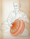 | This is a single headed percussion instrument which is not only found in Northern South Asia, Central Asia, and the Middle East, but also in parts of the Russian polar regions. This simple drum is formed by attaching a skin cover onto a wooden ring with glue and cloth ties. This is similar to the Persian daira and the Turkish del. Some daira have metal pieces attached to give them a tambourine-like quality. The daira is usually plyed while held vertically on one hand and beat with the other (Information and image from Gold and Schalliol 2004). |