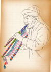 The Murli or Punji is a wind instrument which consists of two parts; the upper part is made of a dried and hollowed gourd which acts as the main sound chamber. The lower part is constructed from two reed pipes which are joined together into a double barrel form and positioned below the sound chamber. On most of these instruments the reed section has eight holes, which are used to play tones for music. However, in some parts of Sindh there is an additional hole in the lower back end of the right pipe. This instrument is known as a Murli in Sindh, and a Punji in other parts of Pakistan. It is most commonly recognized for its popular use by snake charmers throughout South Asia (image and information from Baloch 1988). |