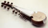| The tambur is a stringed instrument which is often used in Afghanistan as well as Pakistan. It can have a varying number of strings, commonly about eighteen, which can be made of metal, animal guts, or nylon. These strings are positioned over a resonating chamber which is often made of a hollowed gourd. The tambur has a long, hollow wooden neck which has tuning pegs on the side. It is often used either as a solo instrument or as an accompaniment for voice pieces (Information and image from Gold and Schalliol 2004). |