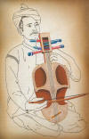 The name of this instrument, Surando is based on 'surayindah', a Persian word for one who produces tunes. The Surando is a common instrument in the Sindh, Balochistan and Frontier regions regions of Pakistan. In the Frontier region this instrument is known as called Saro, while in Balochistan it is called Saroz. The main part of the instrument is made with a variety of different types of wood, while the strings are traditionally constructed from horse hairs and intestines of sheep or goat. This instrument can have a varying number of strings, with more simple versions having 5-7 strings and the most complex having 11-13 strings (images and information from Baloch 1988). |