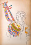 The Sarod is an instrument derived from the Central and South Asian instrument the Rubab or Rabab. This string instrument has a metal fingerboard with no frets, and numerous strings. The membrane covering provides resonance in the sound chamber. It is usually played with a coconut pick. The Sarod is used in many parts of Pakistan including Baluchistan and Azad Kashmir (first image from Bina, second image and information from Courtney 2004). |
